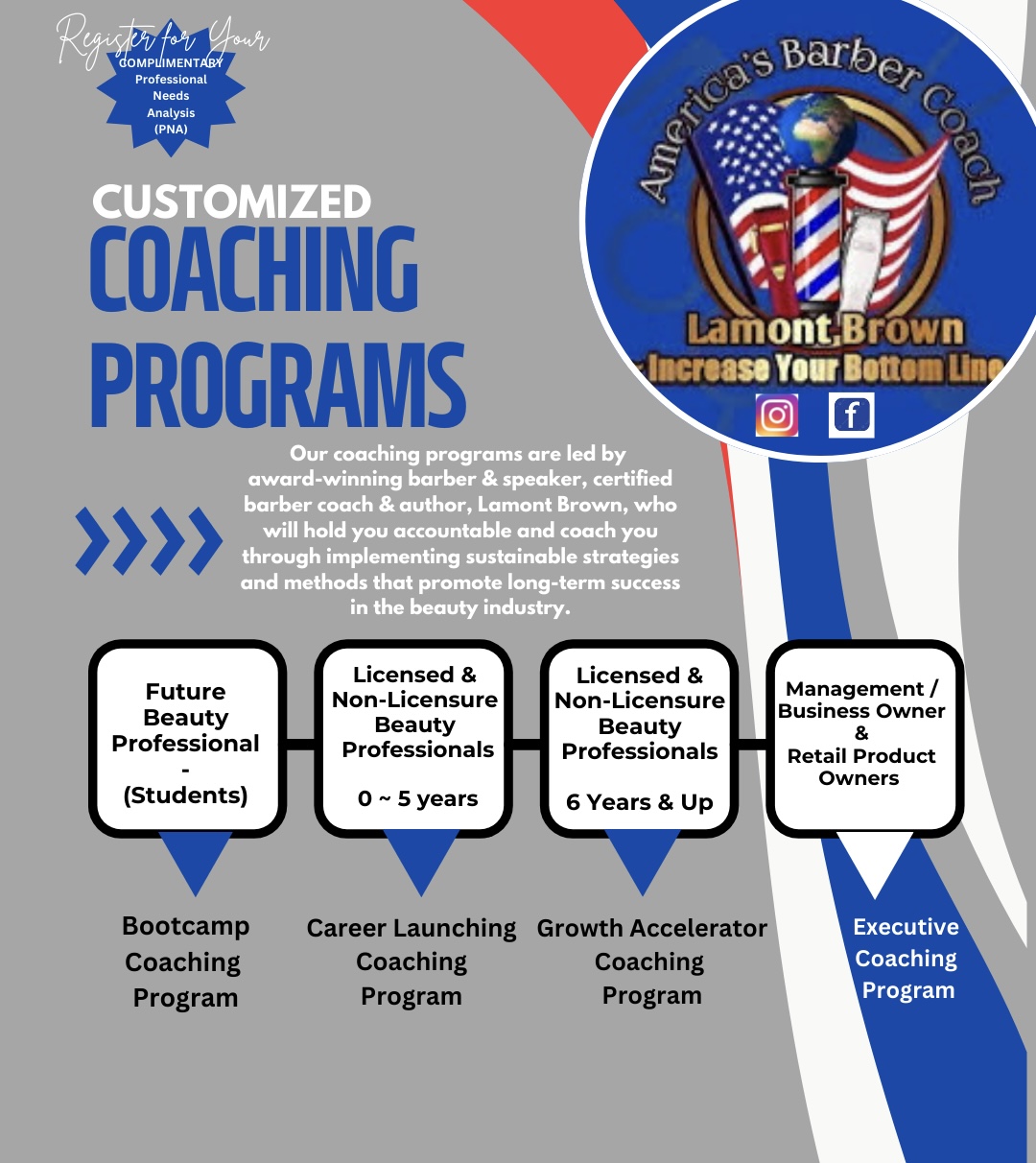 At America’s Barber Coach, we believe in transforming passion into purpose. Founded by Lamont Brown, a nationally recognized barber coach and educator, our mission is to equip barbers and stylists with the tools, knowledge, and confidence to thrive in the beauty industry. With years of experience, national recognition, and award-winning teaching methods, we’re proud to inspire the next generation of barber-preneurs through professional education and real-world guidance.